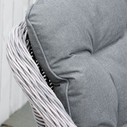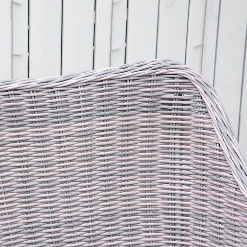 Crafted from high-quality PE rattan over a strong powder-coated metal frame, this set is built to withstand the elements while maintaining an elegant aesthetic. The mix of round and half-round wicker enhances its refined look, making it a stunning centrepiece for any garden or patio.